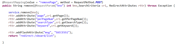 rttr.addFlashAttribute로 전달한 값은 url뒤에 붙지 않는다.