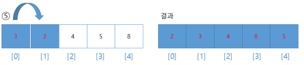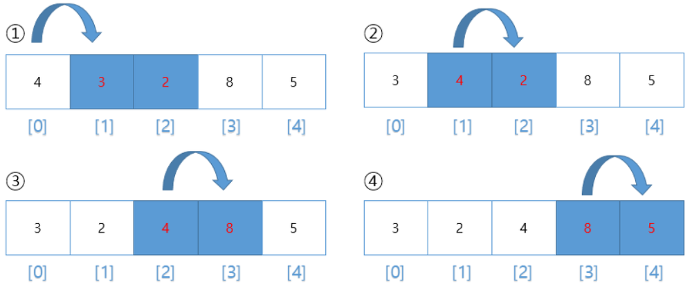 이런식으로 ④번처럼 배열의 끝까지 정렬을 다 했으면 다시 배열의 처음으로 돌아와