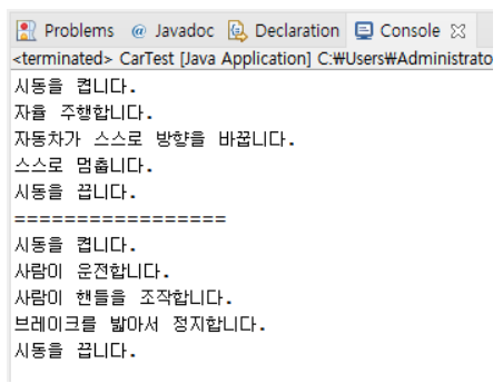 System.out.println("자동차가 스스로 방향을 바꿉니다.");