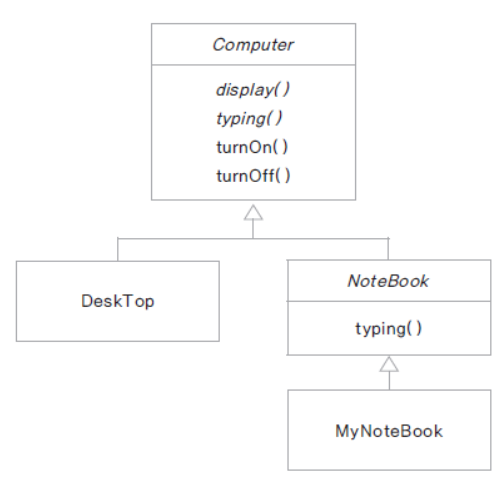 - 추상 클래스의 추상 메서드는 하위 클래스가 상속하여 구현