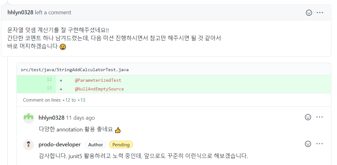 리뷰어가 사소한건 바로 지적해주었지만,