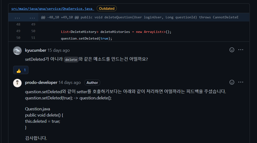 도메인에 있던 delete기능들을 QnaService로 분리하였다.