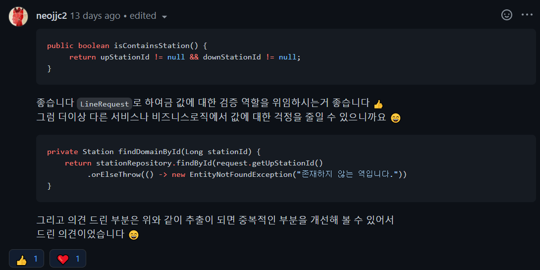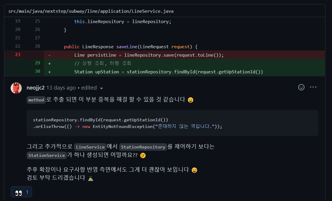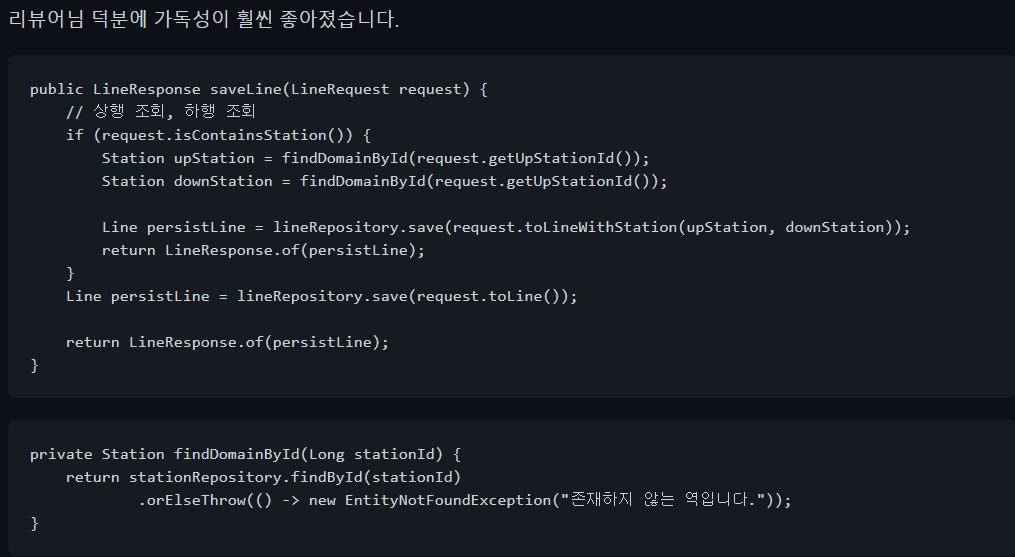 stationRepository를 제어하기 보다는 stationService로 분리해서 결합을 낮추는게 좋았다.