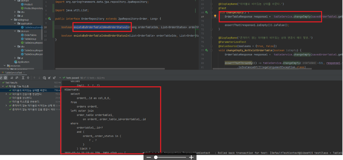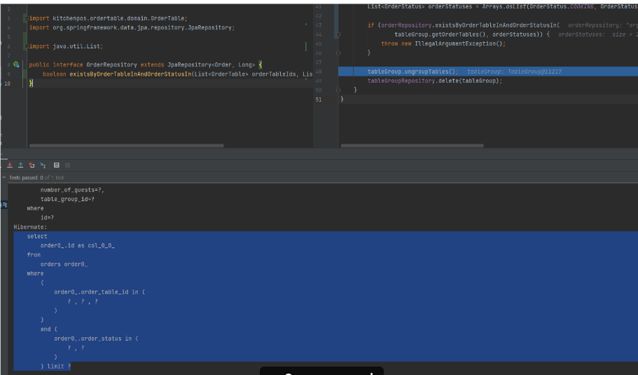 처음에는 OrderTableRepository에서만 수정을 하려고하니 메인을 바라보는 엔티티가 Order이기 때문에 Order로 변경하였다.