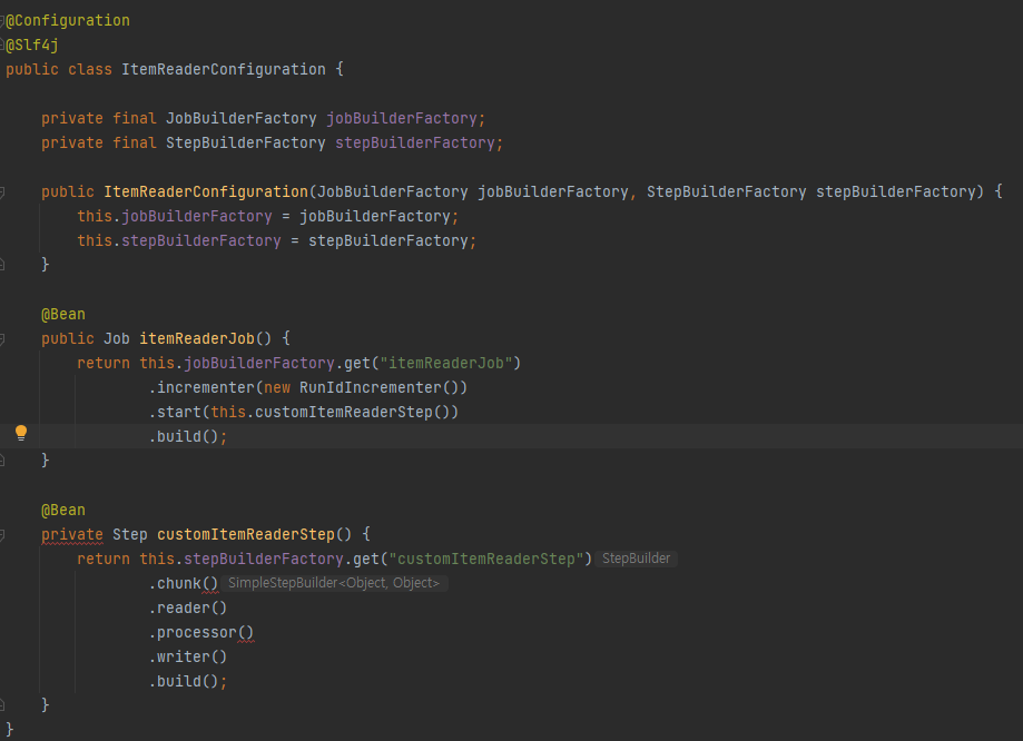 public ItemReaderConfiguration(JobBuilderFactory jobBuilderFactory, StepBuilderFactory stepBuilderFactory, DataSource dataSource) {