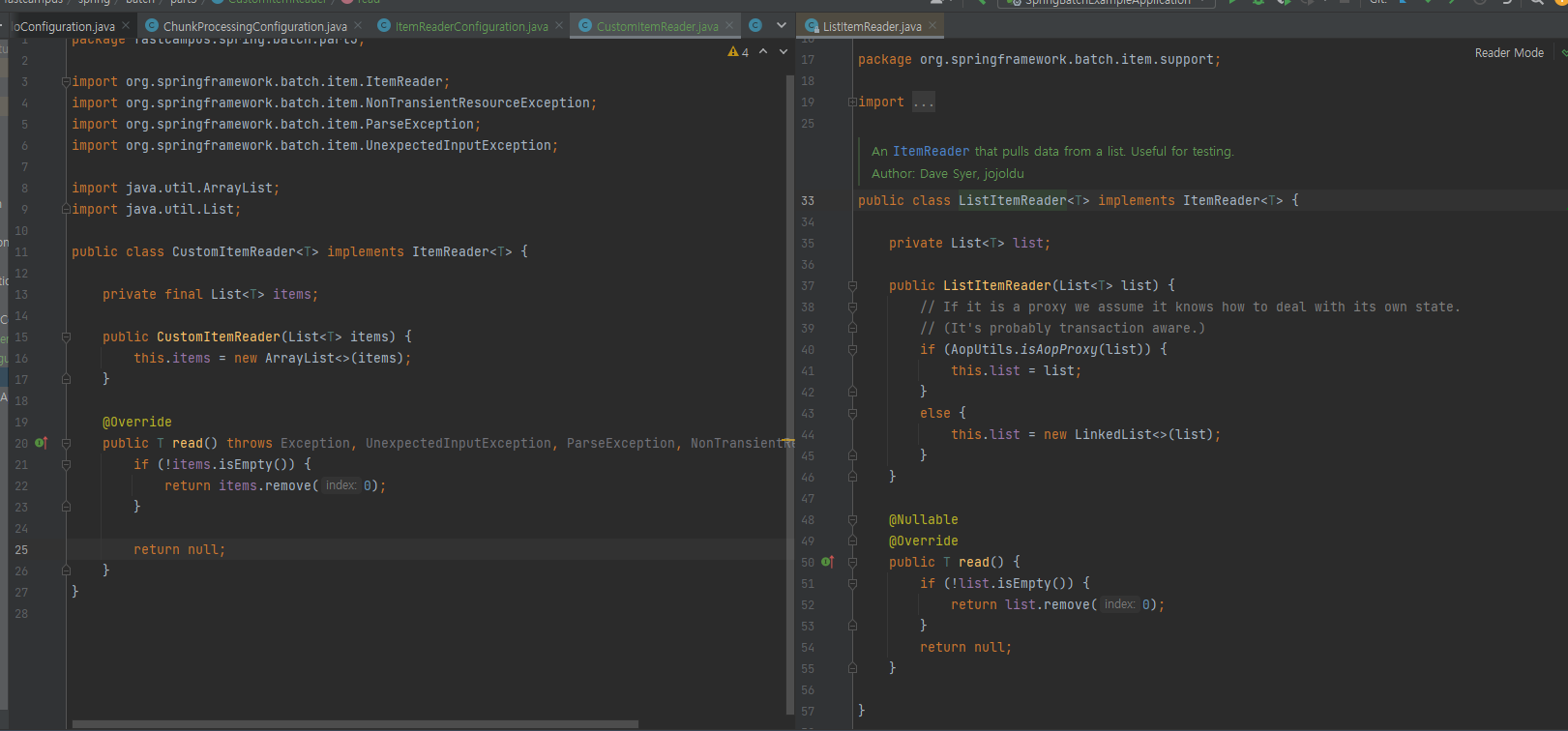 스프링배치에서 제공해주는 ListItemReader와 실습용 수동으로 만든 CutomItemReader 앞으로는 ListItemReader를
