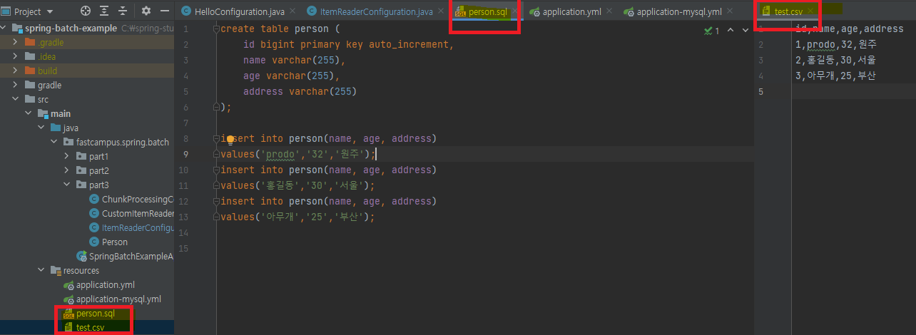 ※ CSV 데이터와 JDBC 데이터를 읽기 위해 아래와 같이 파일을 셋팅한다.