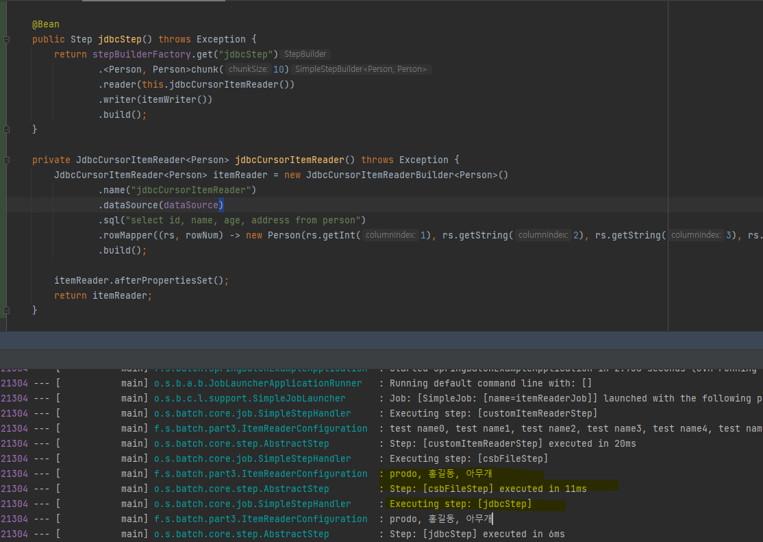 JdbcCursorItemReader<Person> itemReader = new JdbcCursorItemReaderBuilder<Person>()