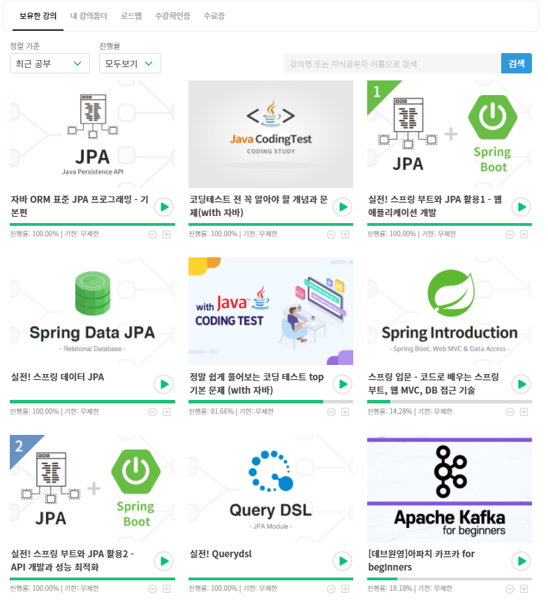 그동안 인강을 기피했던 편견이 깨졌으며, 돈이 아깝지 않다는 생각에 아래와 같이 한번에 플렉스를 하게되었고,