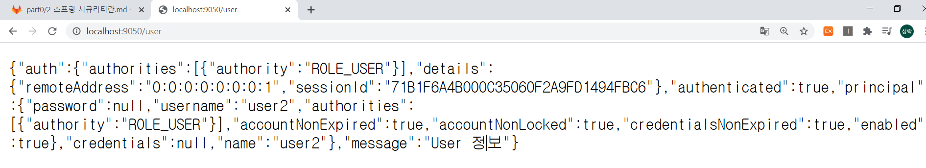 * user로 접근한 화면(http://localhost:9050/user)
