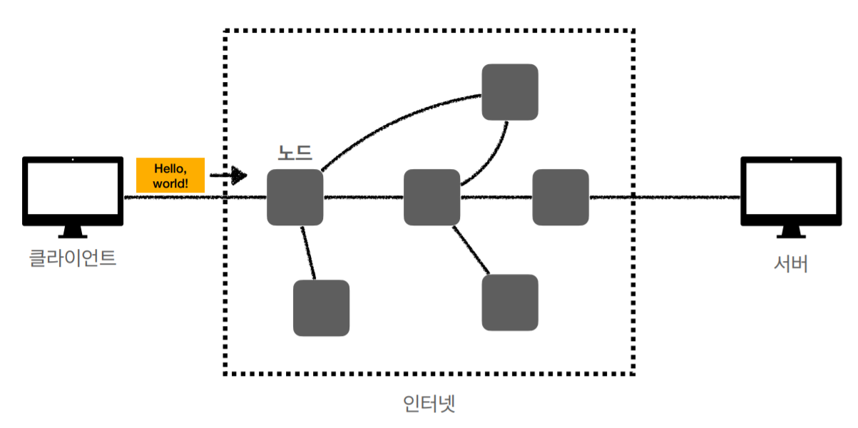 클라이언트 ---> 인터넷(노드) ---> 서버