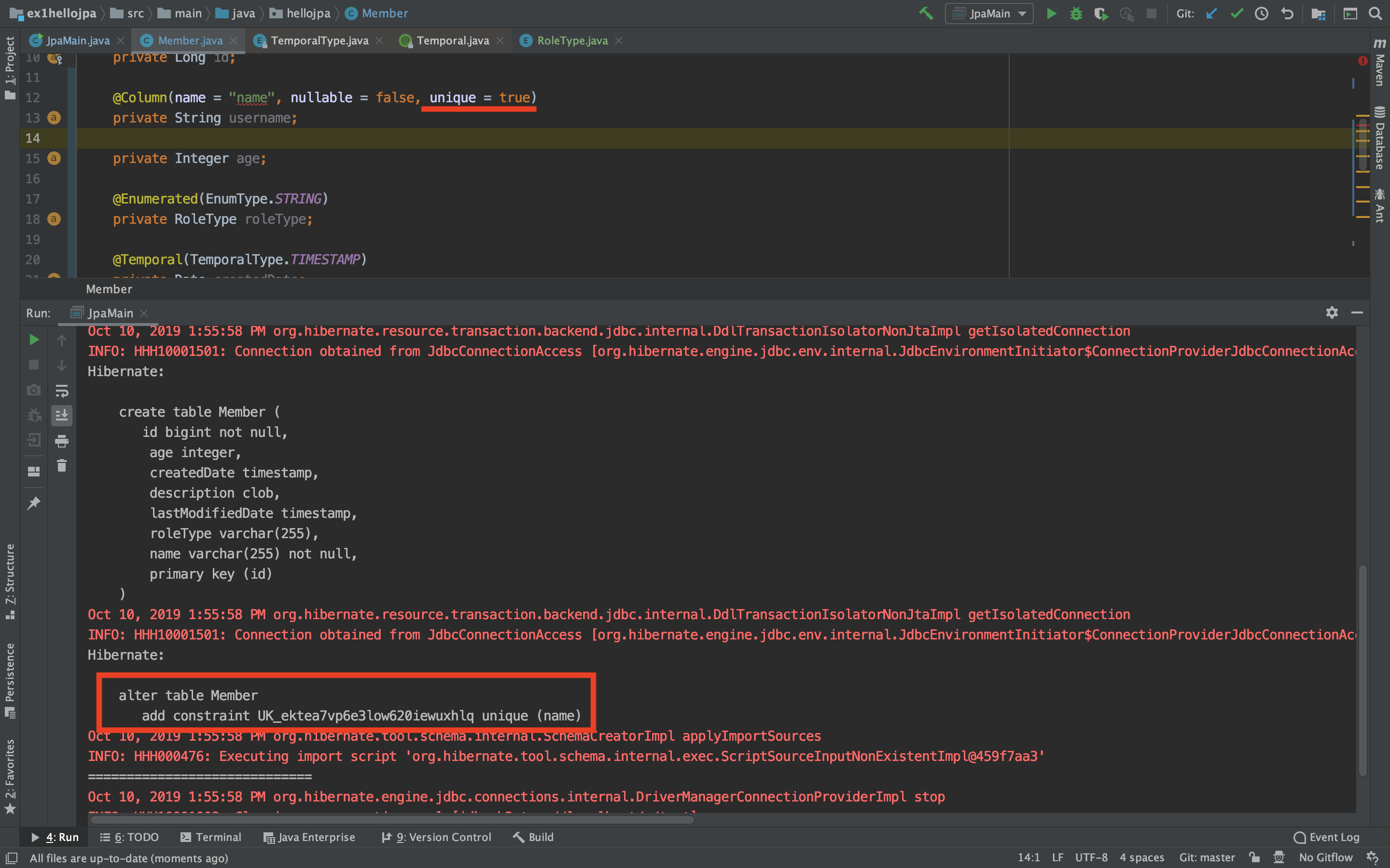 - DDL생성 시에 유니크 제약 조건 생성