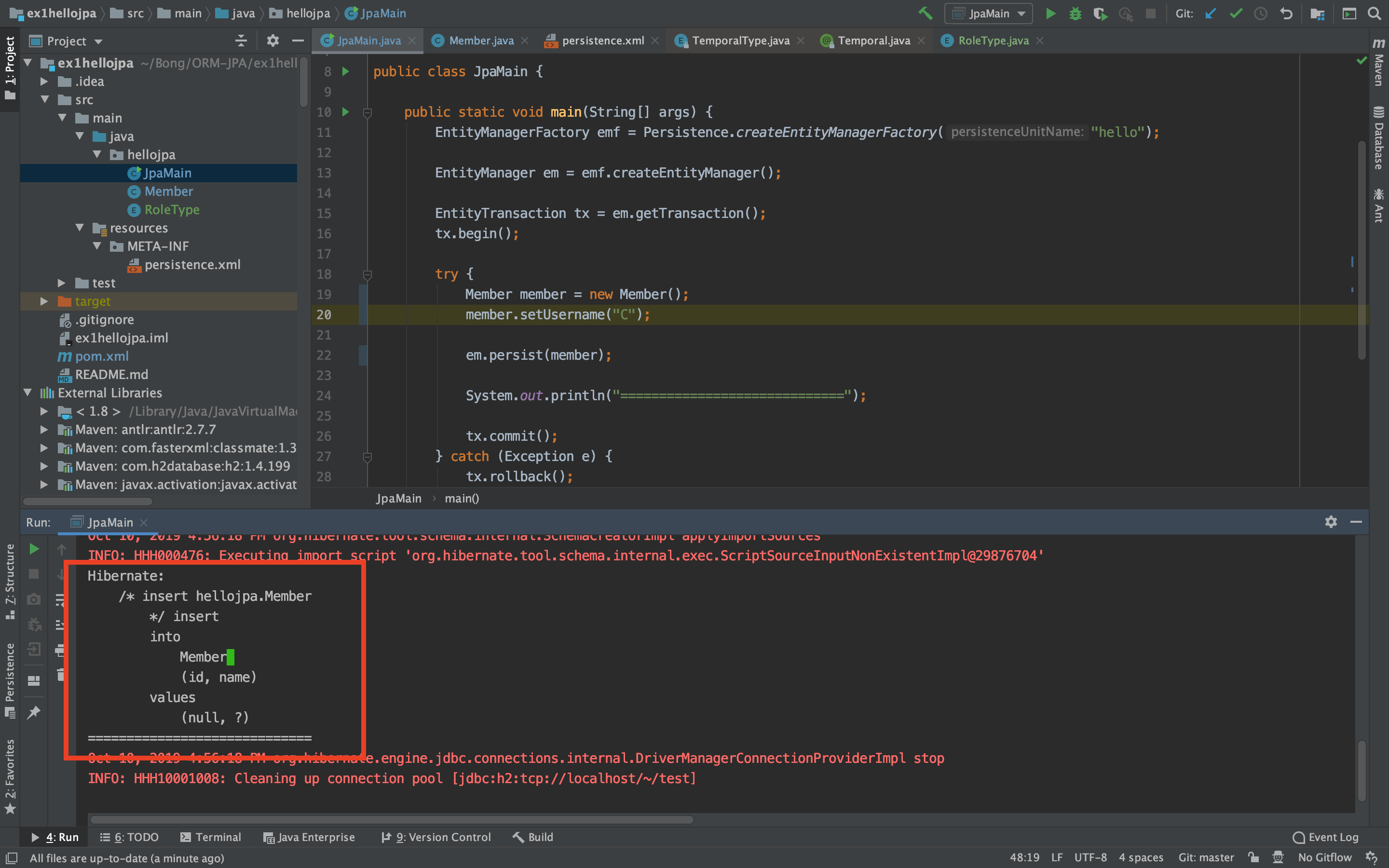 - create-drop : create와 같으나 종료시점에 테이블 DROP