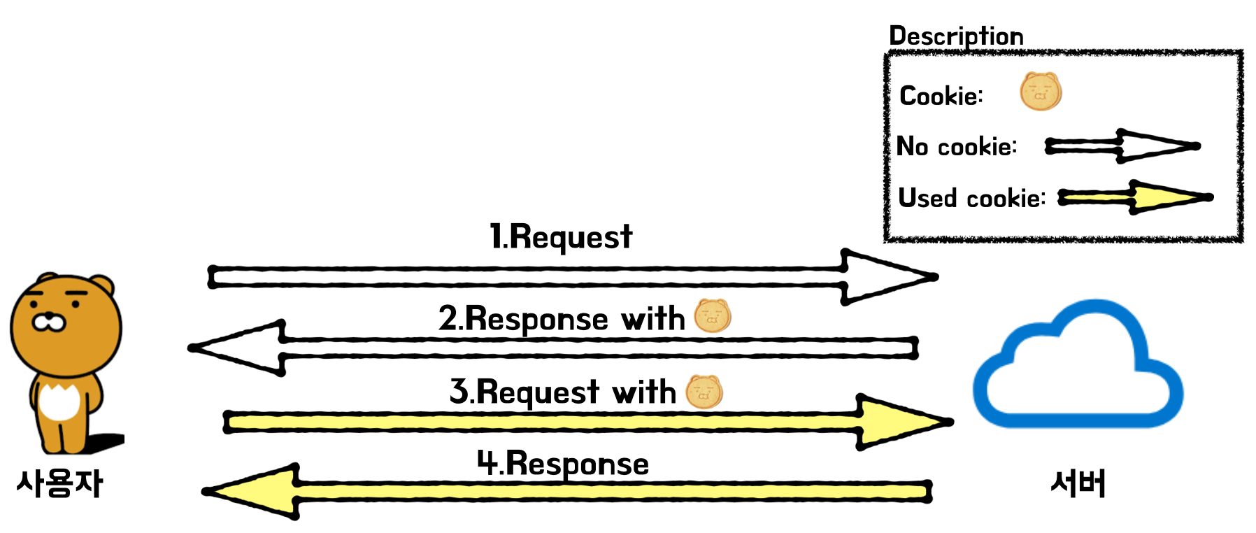 일단 쿠키를 발급받고 사용하는 과정에 대해서 간략하게 그림으로 설명 드리겠습니다.