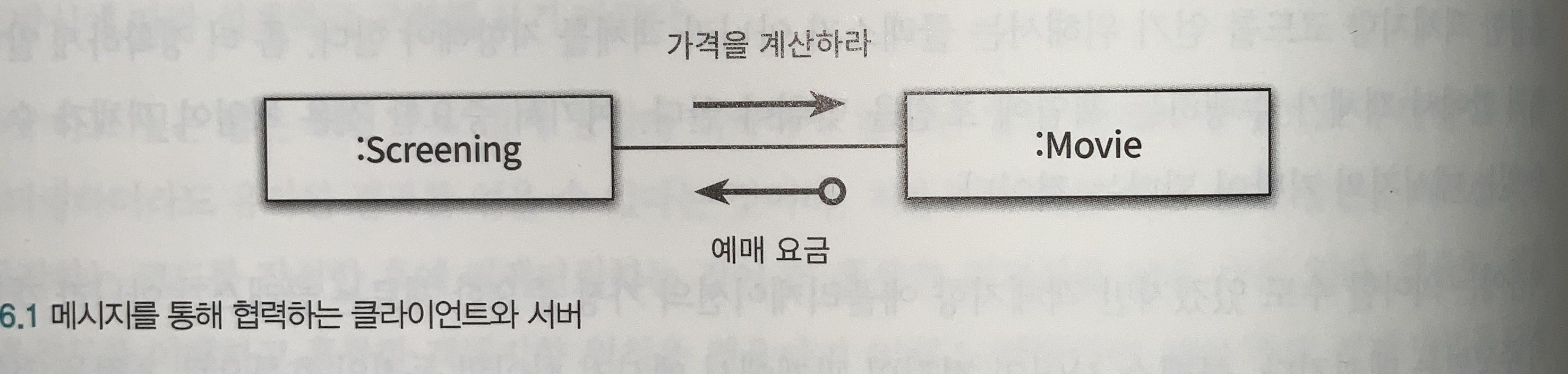 - 협력은 어떤 객체가 다른 객체에게 무언가를 요청할 때 시작된다.