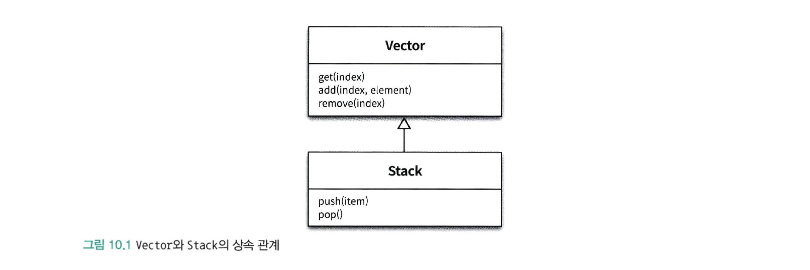 그림 10.1의 퍼블릭 인터페이스를 살펴보면 이 상속 관계가 가지는 문제점을 잘 알 수 있다.