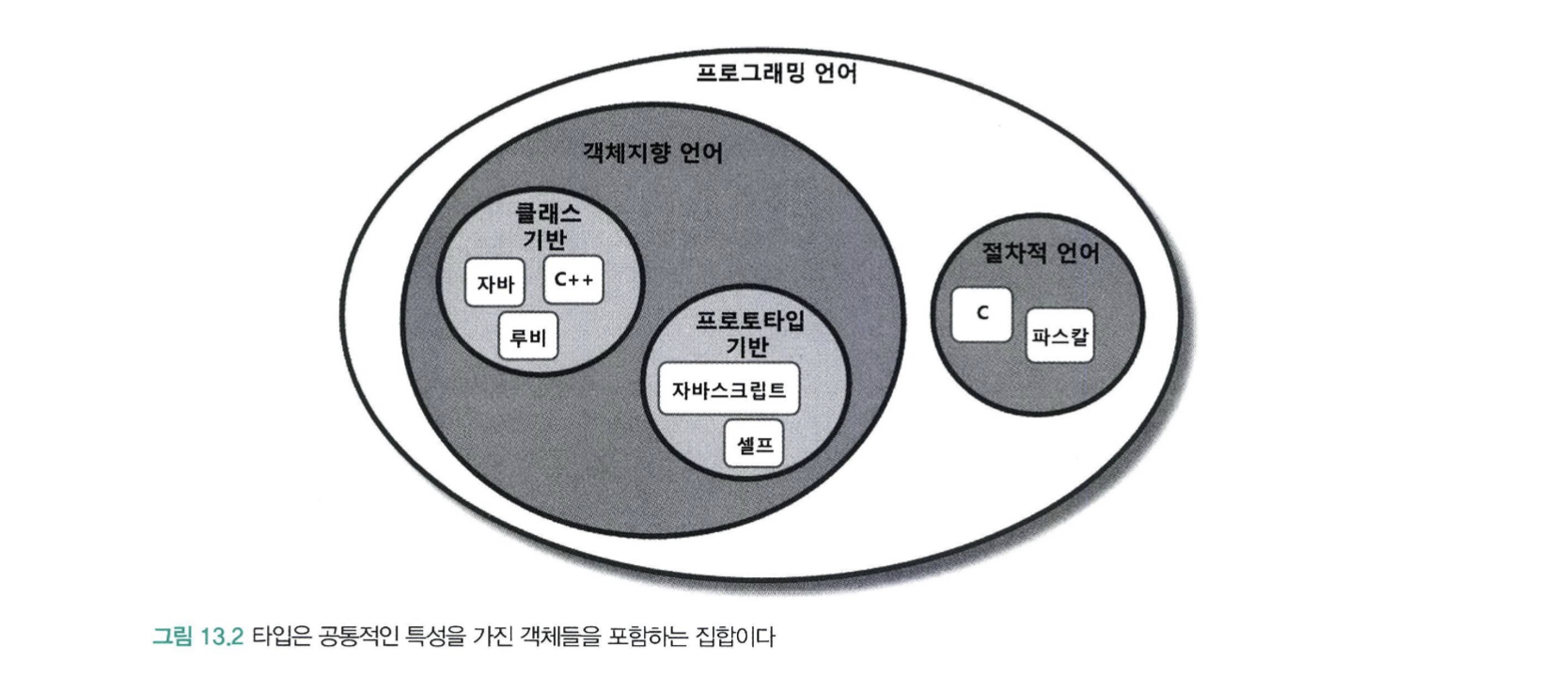 프로그래밍 언어 타입은 객체지향 언어 타입보다 더 일반적이고 객체지향 언어 타입은 클래스 기반 언어 보다 더 일반적이다.