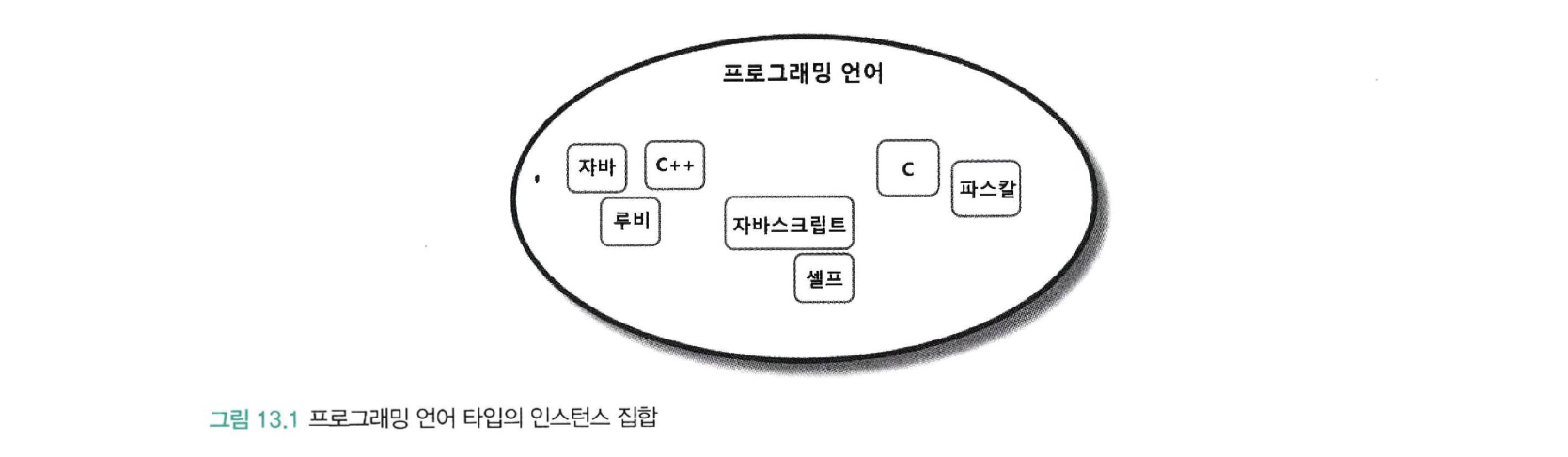 예를 들면 자바, 루비, C++과 같은 프로그래밍 언어들은 프로그래밍 언어 라는 타입으로 묶을 수 있다.