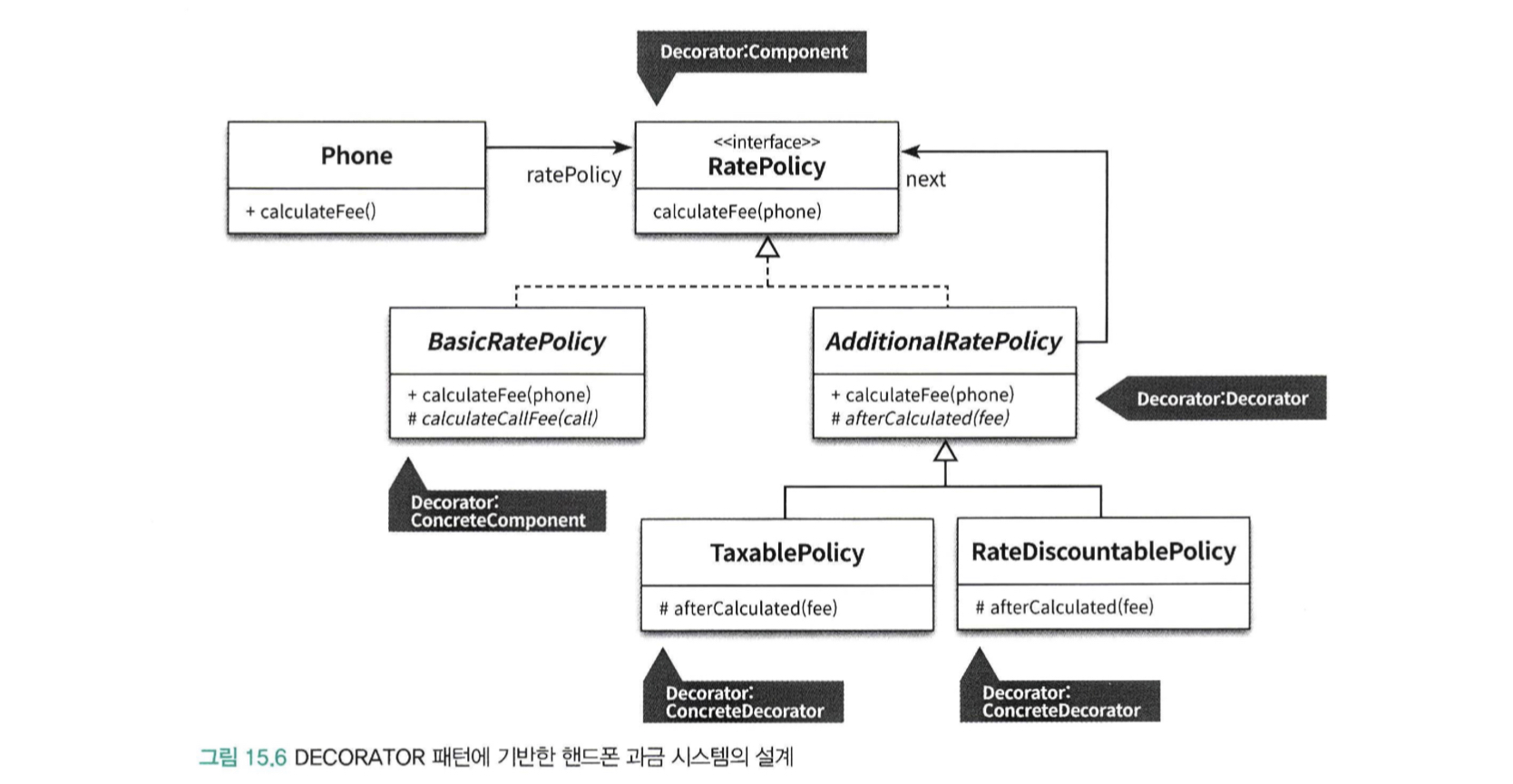 - BasicRatePolicy는 실제 역할을하는 ConcreteComponent이다