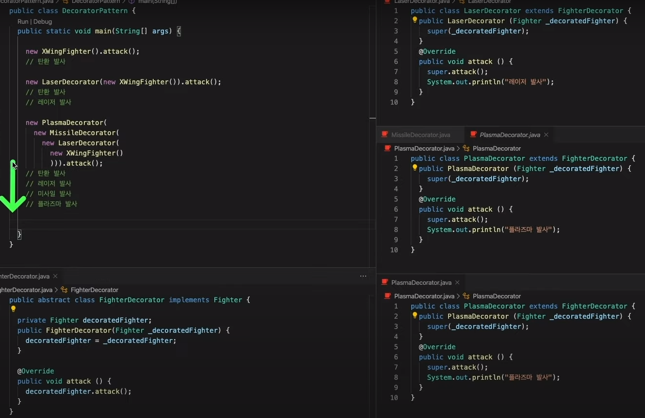 DECORATOR Pattern은 객체의 행동을 동적으로 추가할 수 있게 해주는 패턴으로 기본적으로 객체의 행동을 결합하기 위해 객체 합성을 이용한다.