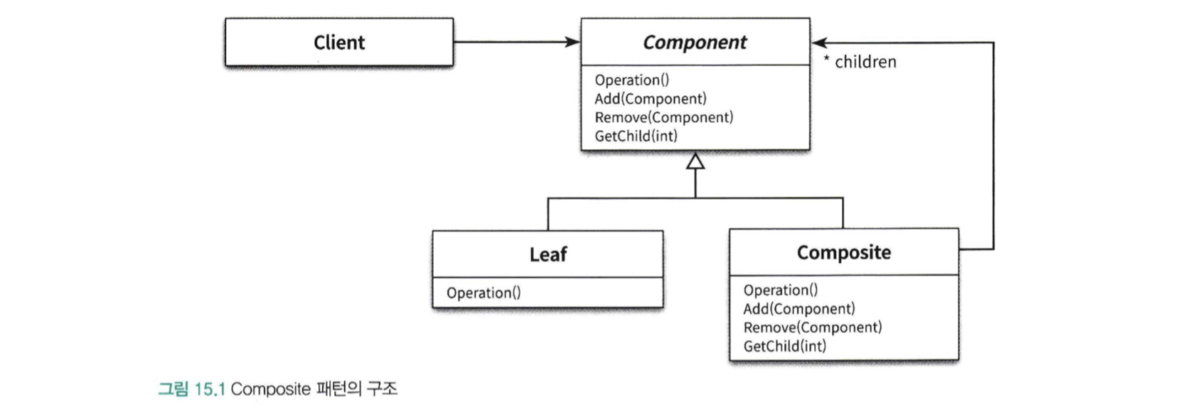 COMPOSITE Pattern은 객체들을 트리구조로 구성하여 그릇 객체와 내용물 객체를 동일하게 취급할 수 있도록 만들기 위한 패턴