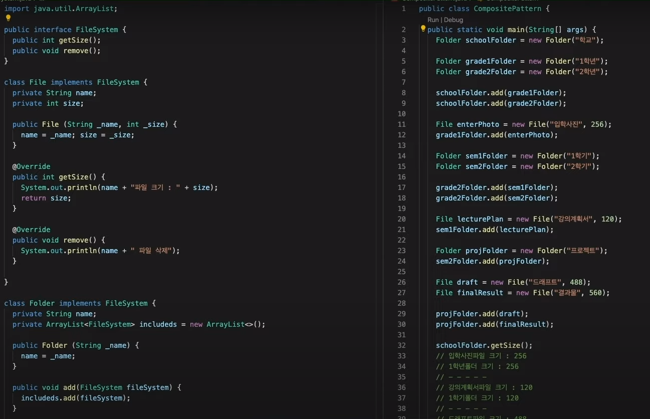 예시1) 폴더와 파일 관계로 볼수 있다.