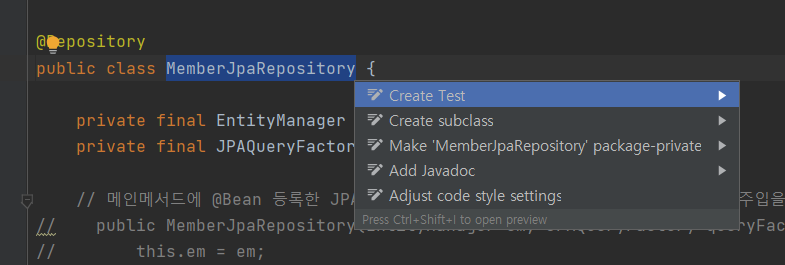 * 인텔리J에서 JUnit 생성하기. 인텔리J에서 단위테스트 수행하기.