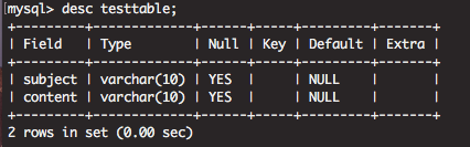 테스트용으로 testtable이라는 테이블을 생성합니다.