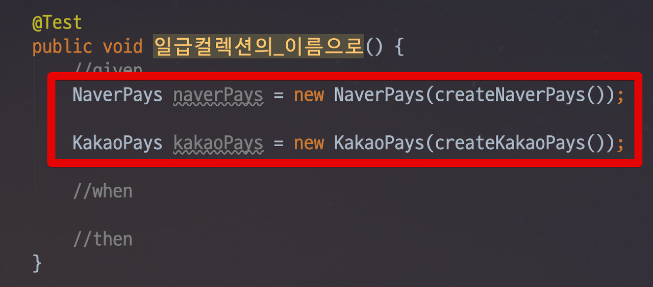 네이버페이 그룹과 카카오페이 그룹 각각의 일급 컬렉션을 만들면 이 컬렉션 기반으로 용어사용과 검색을 하면 됩니다.
